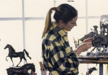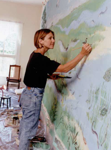 "... I design objects in a wide variety of media. Some of my designs are inspired by classical art from other cultures, and some are purely from my own imagination. Using materials such as canvas, bronze, silver, and painted wood I am able to generate designs which are decorative and functional. The subjects are largely derived from the native flora and fauna of the Eastern Shore of Virginia, and the formats are often adapted from classical or primitive styles. I seek to document and explore the diversity of wildlife and to increase the awareness of my audience, with the hope of protecting our natural environment. Since much of my design work is done on commission, it is linked not only to the natural world, but also to the dreams and imaginations of the patrons who request it. By creating functional objects like floorcloths, painted furniture, and jewelry, I hope to enhance the lives of my viewers on a daily basis."